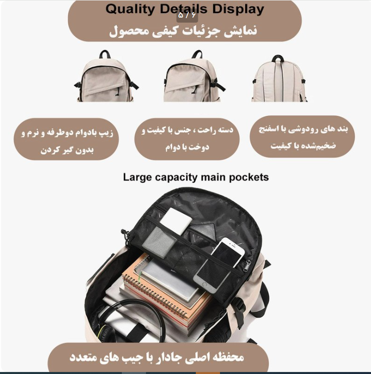 کوله پشتی مدرسه مدل یو ام کد 5476